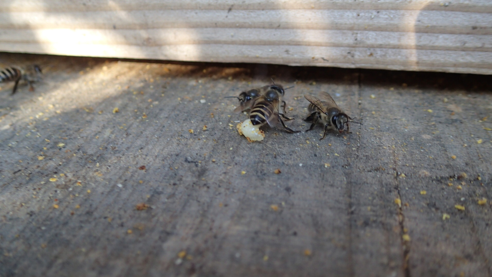 2匹で蜂児を奪い合っている蜂たちもいます。