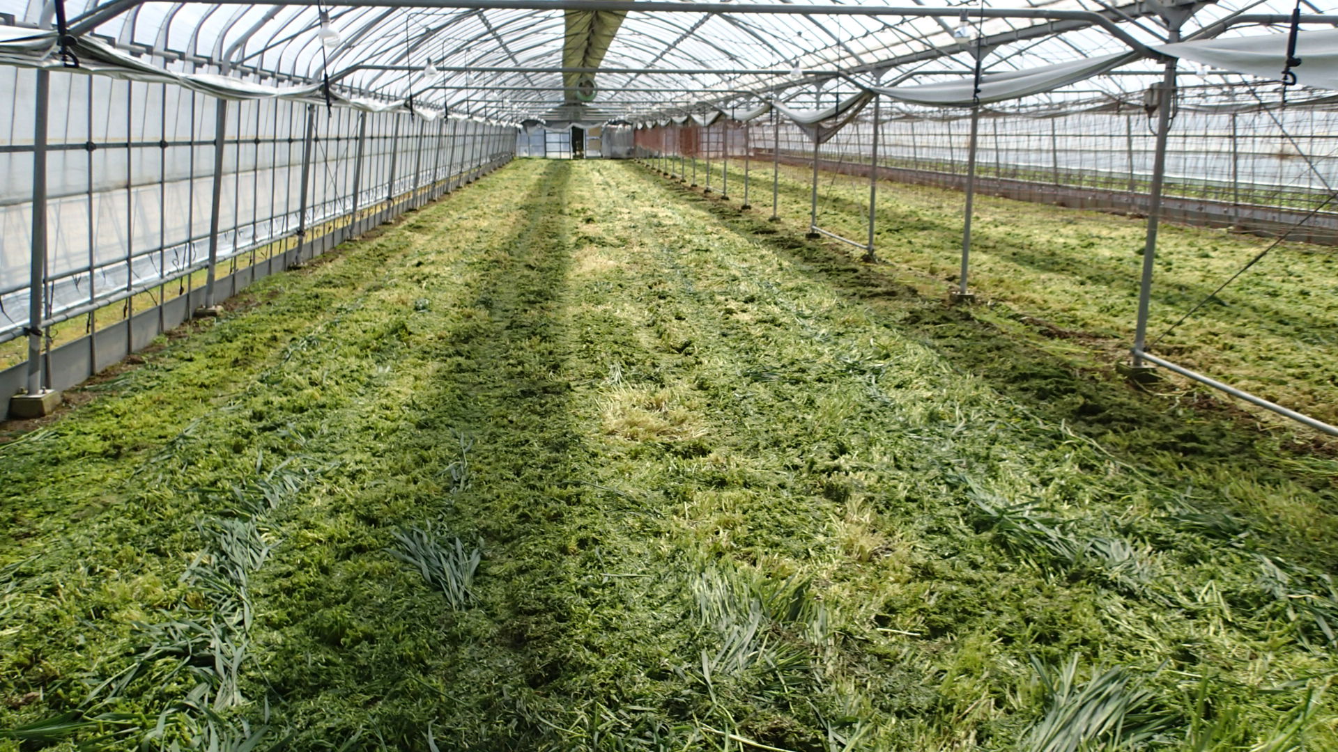 今日は、緑肥を植えてあるハウスにハンマーモアをかけました。