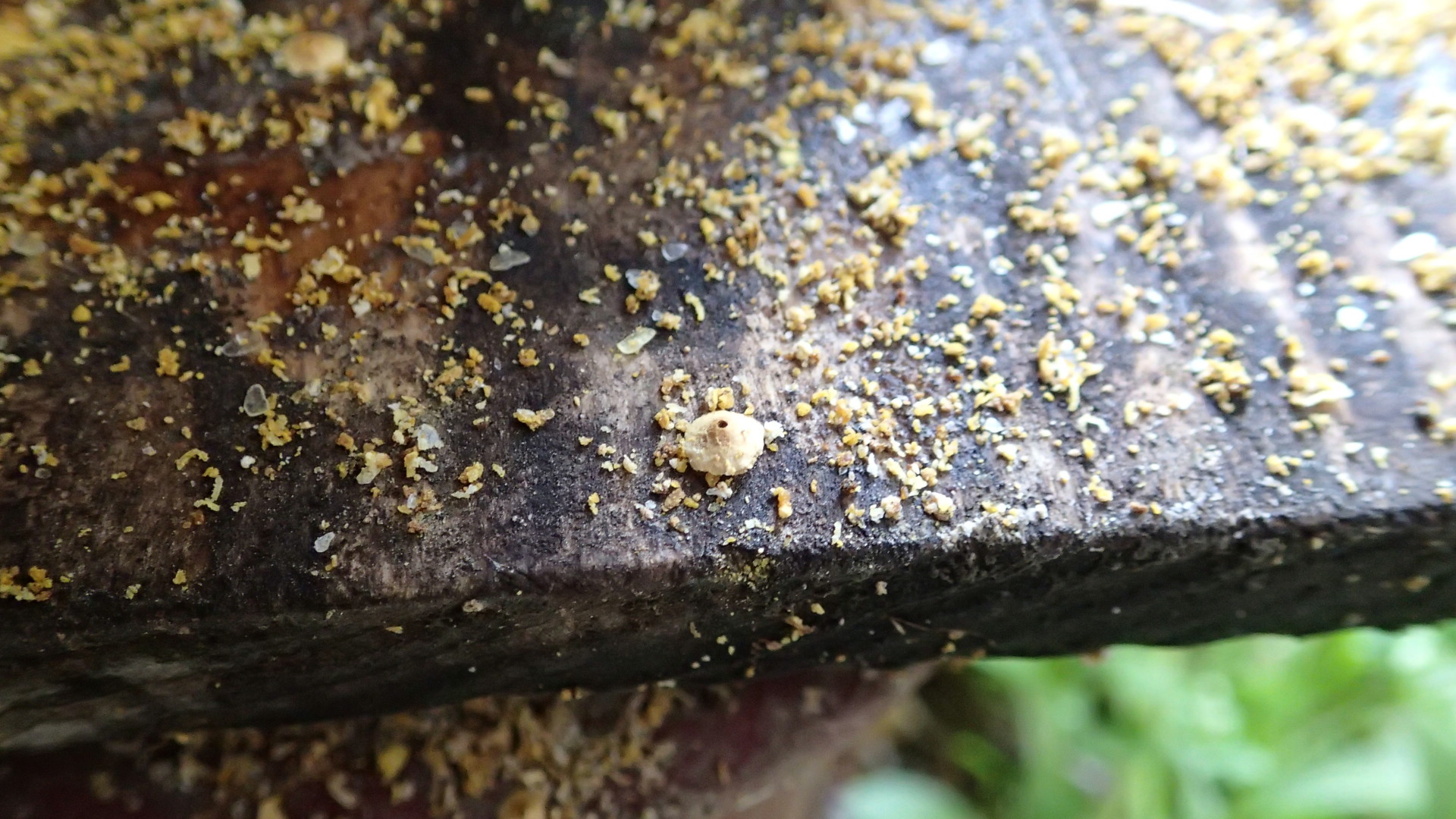 まだどの巣箱からも雄蜂は見られないので、見忘れた古い雄蜂の巣蓋ではないと思います。