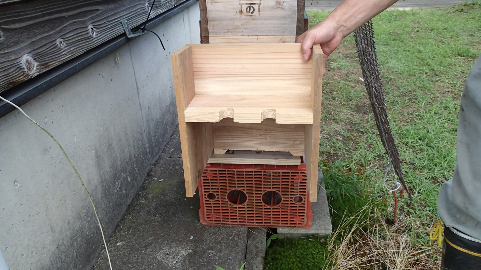 週末、趣味の日本みつばちをしている蜂飼いさんがスズメバチ捕獲器(完成前)を持ってきました。