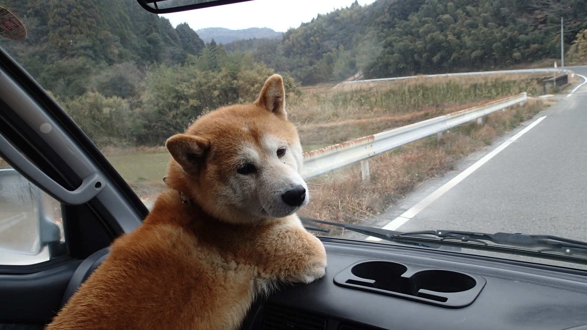 先日ですが、おじさんは犬の大好きな今年初のドライブに連れてってくれました。