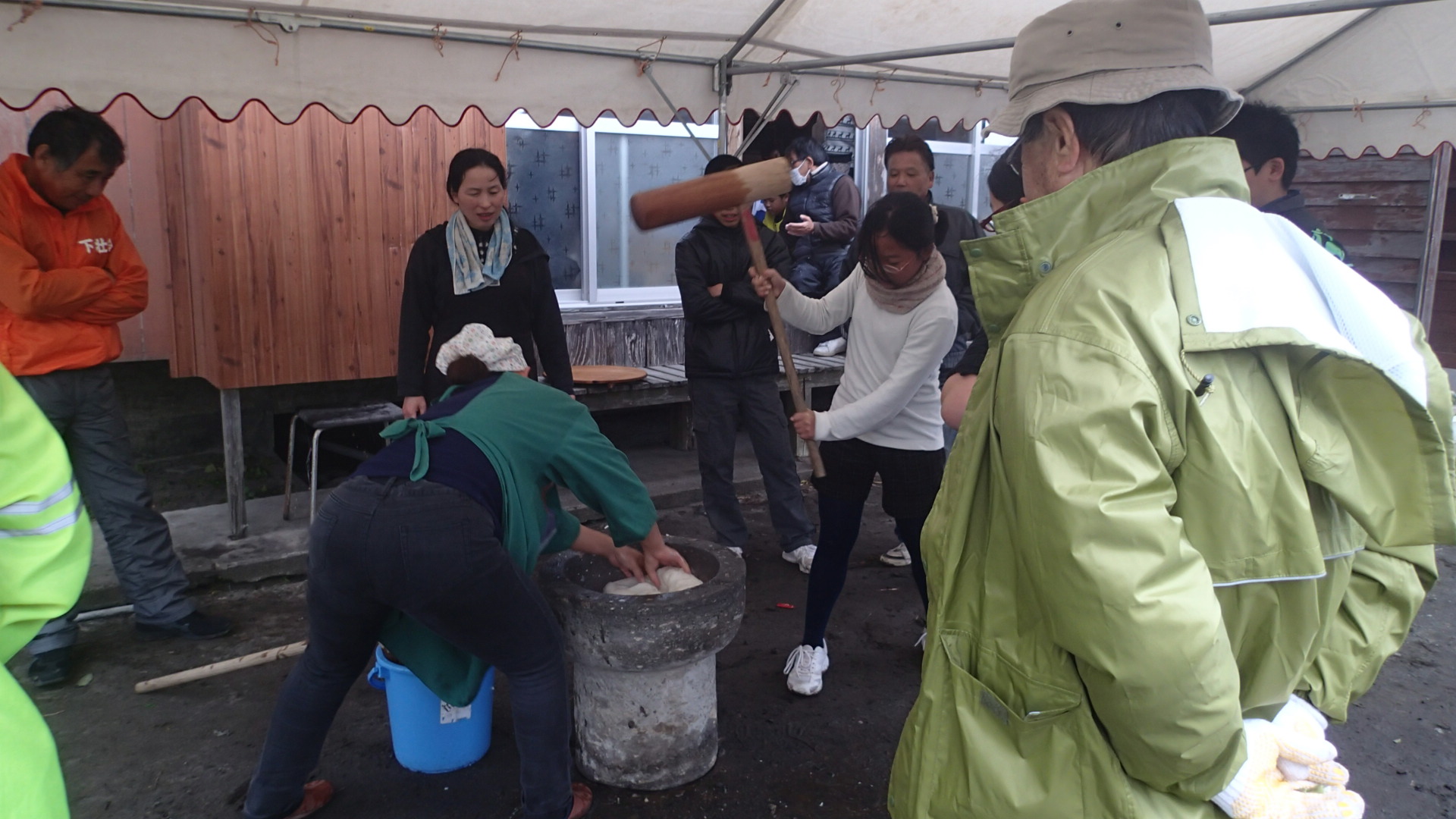 昨年同様我が家に来る助っ人さんもいて、餅つきは中学生が杵係り、助っ人さんが臼の餅米をひっくり返す係りで、たのしく笑いながら、おじさんたちは野次を飛ばして盛り上げていました。
