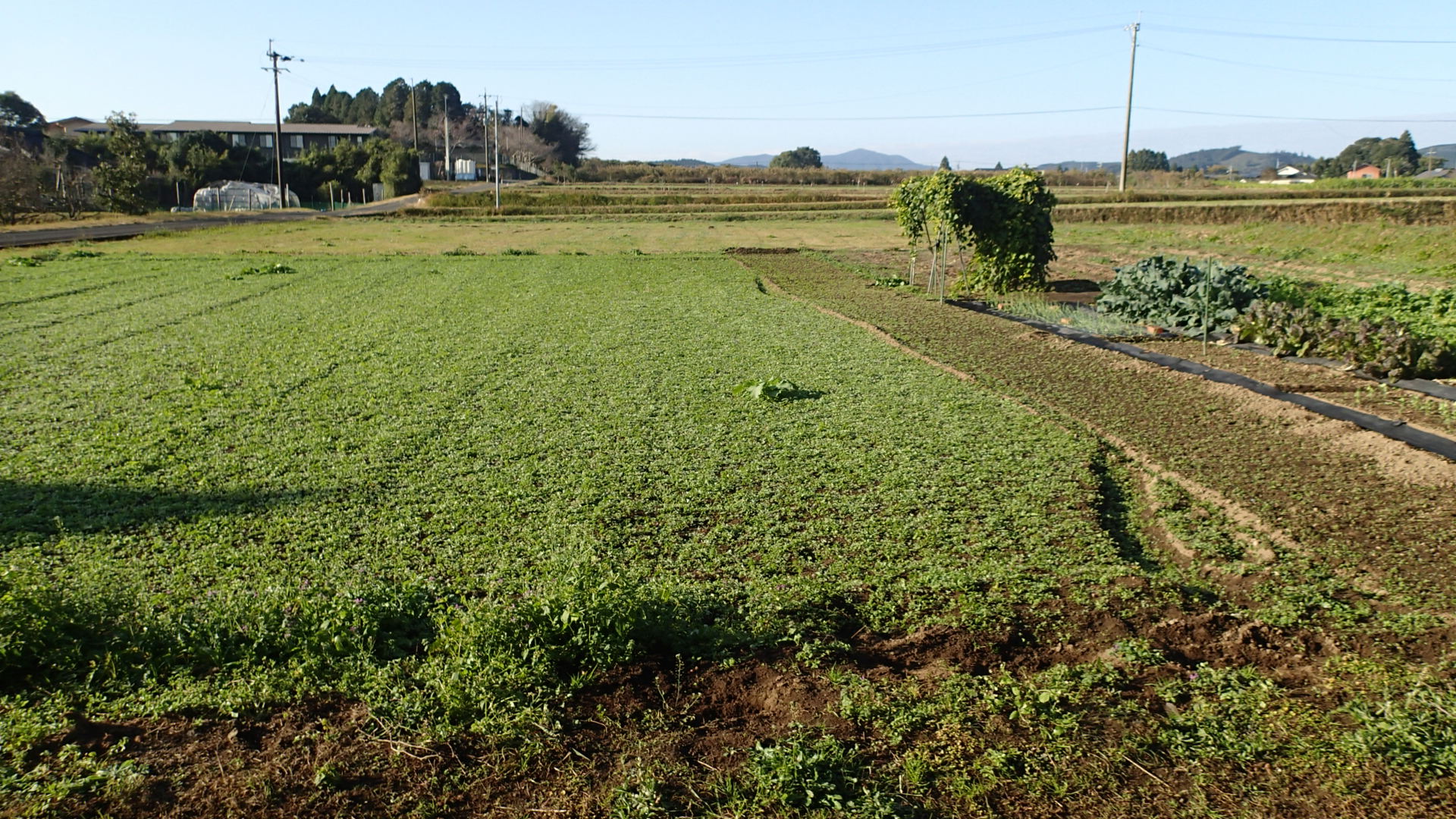 うっすら(正しい表現かはわかりません)と覆っていた草がなくなり、きれいな菜園畑になりました。