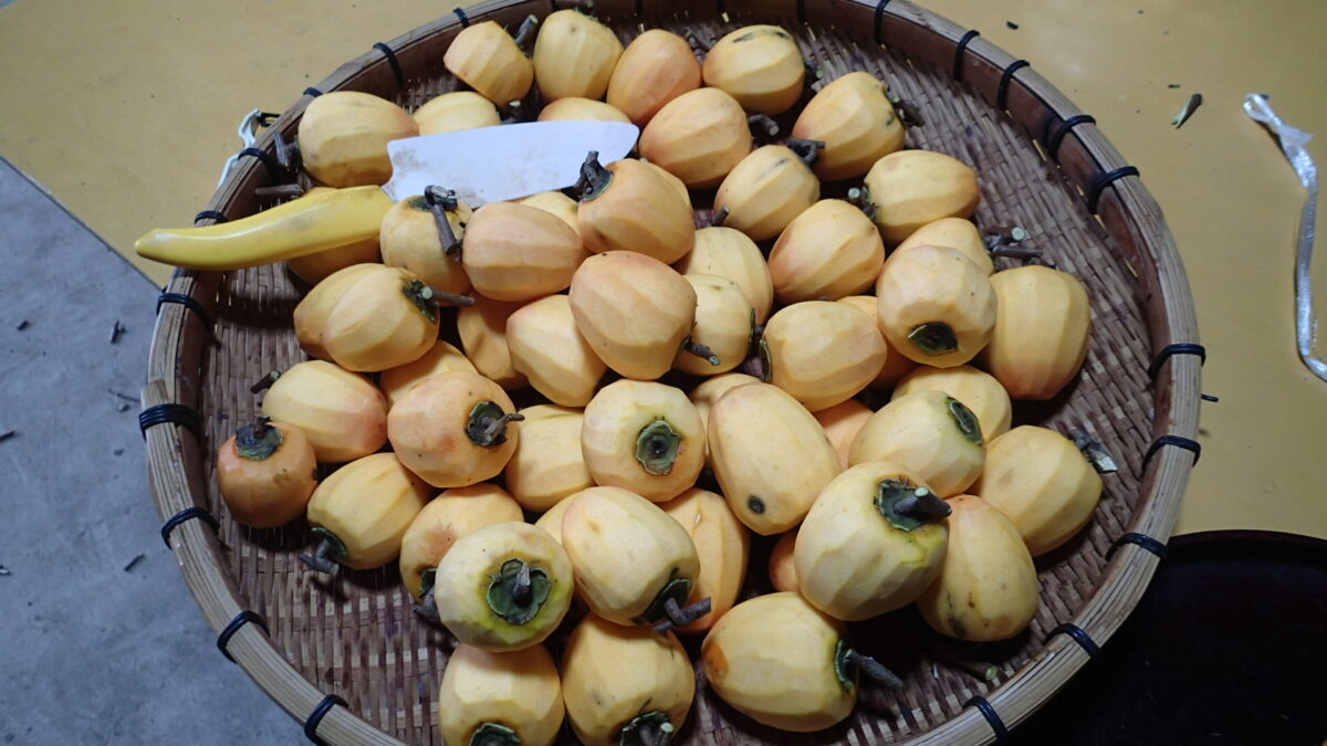 使う柿は、身内の畑横にある柿の木にたくさん実った渋柿を使いました。
