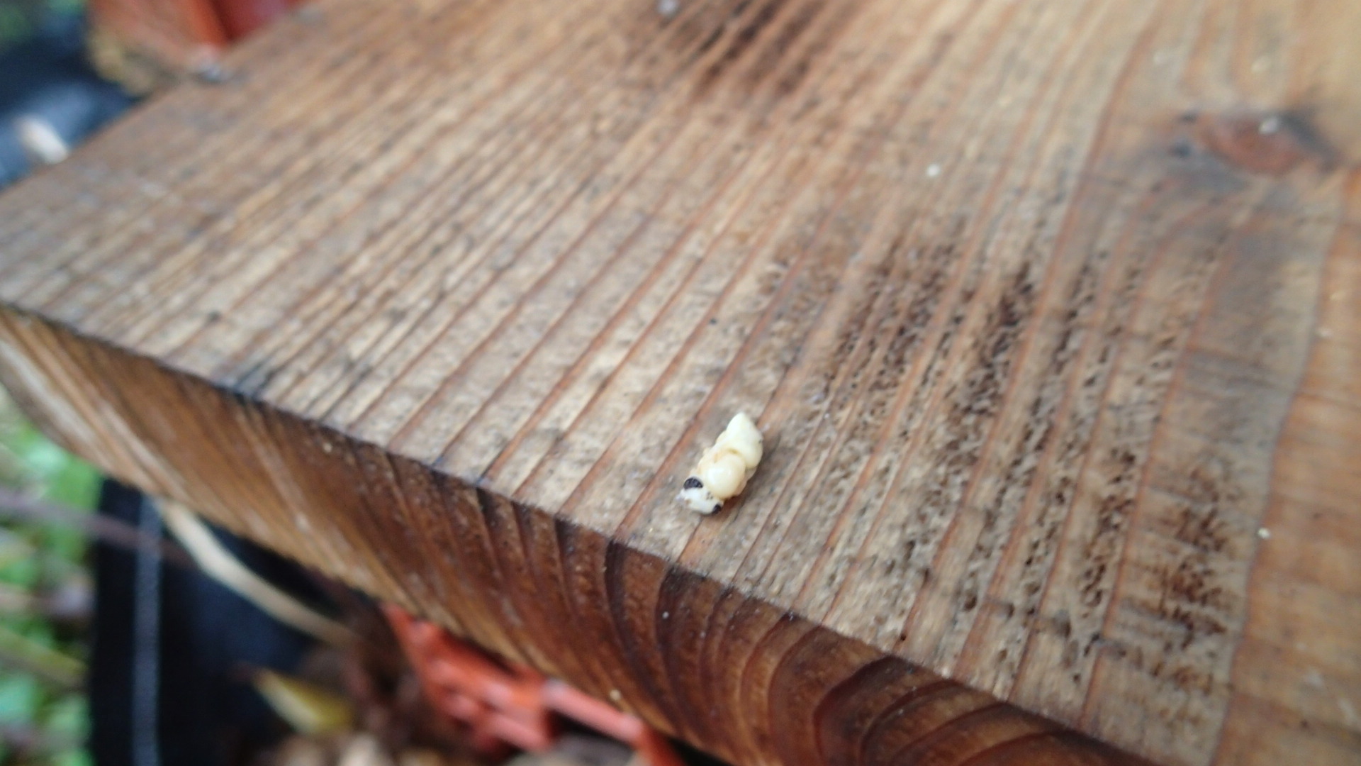 数日前にとった写真、ふたつの巣箱に蜂児が出されていました。