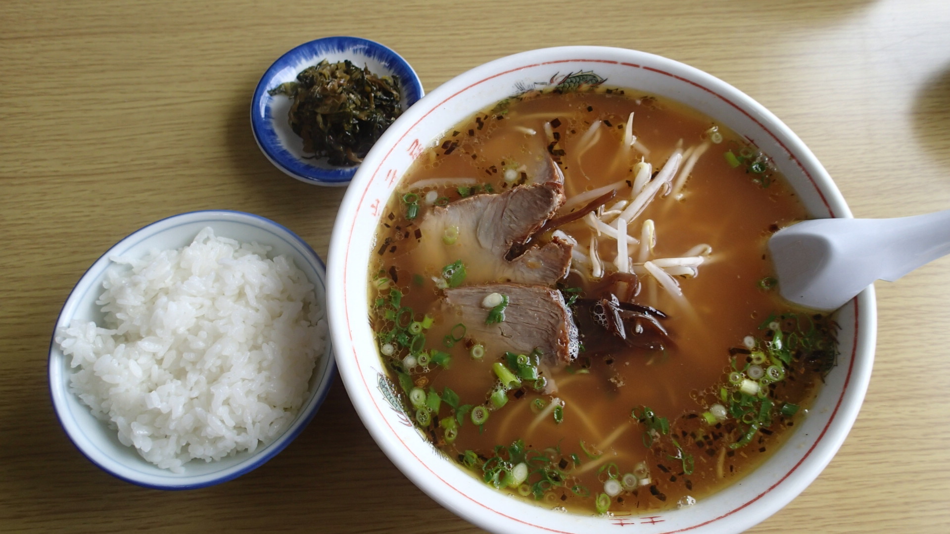ラーメンとごはんを頼んで待っている間に軽トラできた作業着のおじさんが入ってきました。